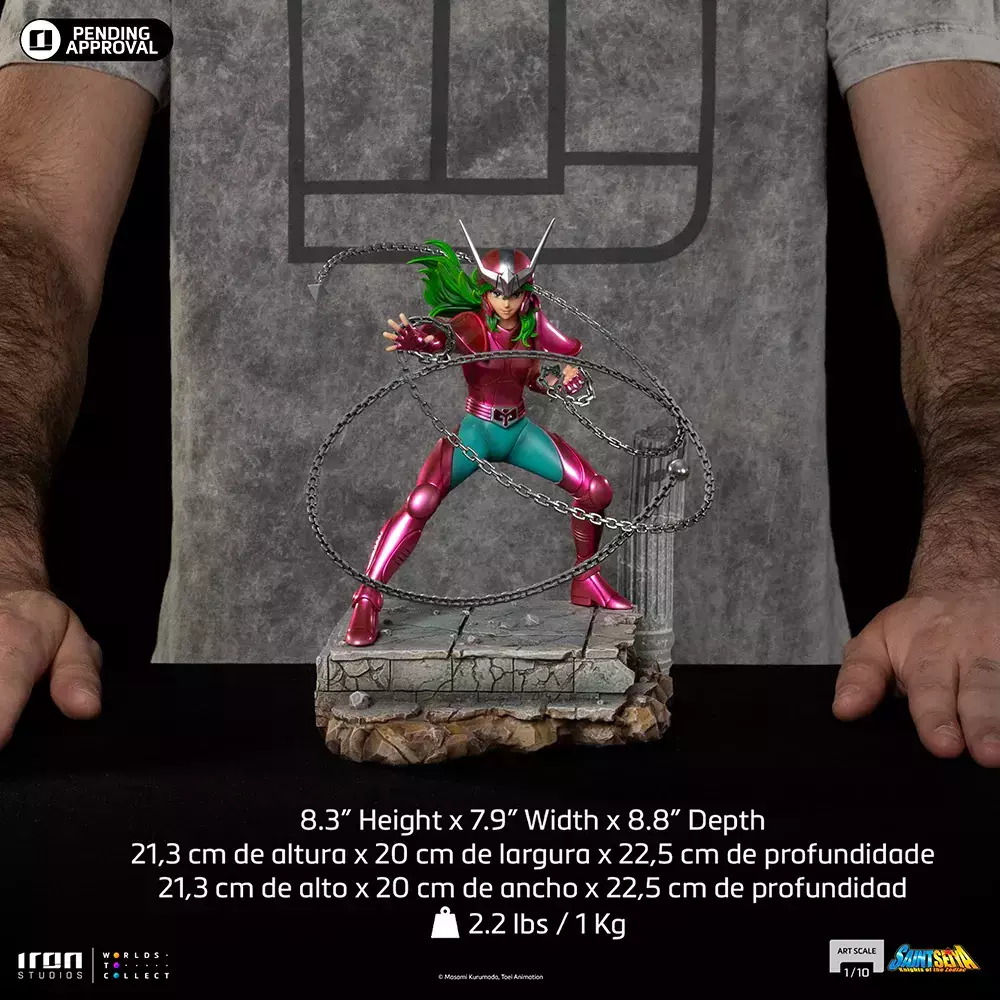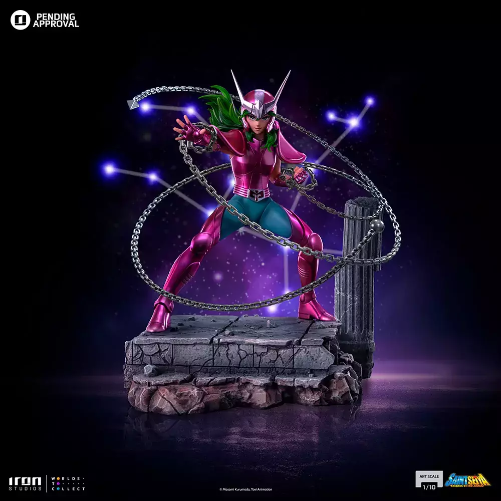 Estátua oficial da linha Art Scale 1/10 da Iron Studios, trazendo Shun de Andrômeda, um dos Cavaleiros de Bronze de Saint Seiya (Os Cavaleiros do Zodíaco). Produzida em edição limitada, apresenta pintura manual, base diorama temática e riqueza de detalhes que remetem fielmente ao personagem do anime.